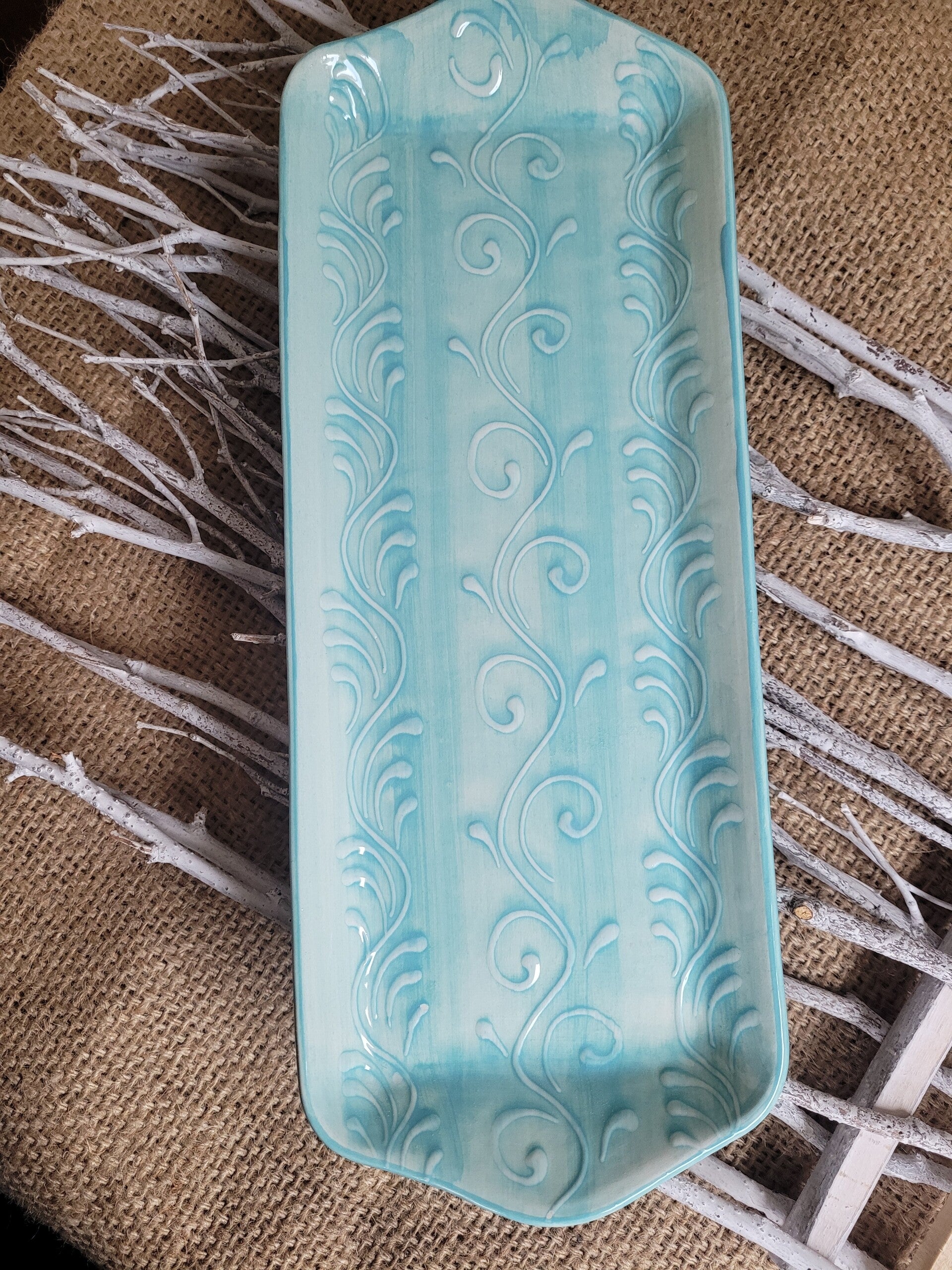 Platte für Kuchen, Käse, Tapas usw.aus Keramik, handbemalt, spülmaschinenfest